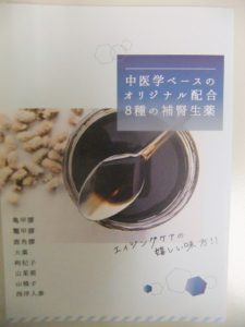 このリーフレットでは「亀甲膠(きっこうきょう)」カメの甲羅、「鼈甲膠(べっこうきょう)」スッポンの甲羅、「鹿角膠(ろっかくきょう)」鹿の角、を中心とした補腎生薬が紹介されています。
