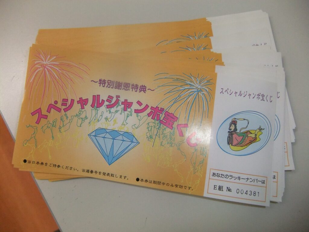 毎年恒例の新春くじ、1/31(金)まで、1万円お買い上げごとに1枚差し上げます。